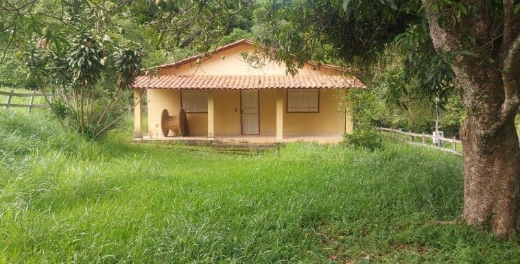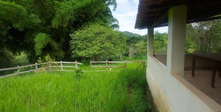 Casa de 3 quartos, sala, cozinha, banheiro, varanda e garagens. Pomar adulto, ótima topografia, curral, terra de cultura e muita água.